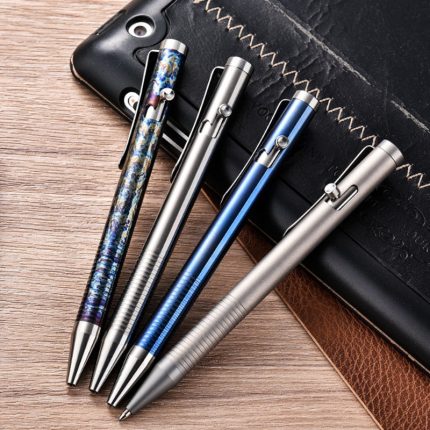 Material: titanium alloy/stainless steel back clipSize: 120mm * 10mmWeight: about 21.5g (including refill)Purpose: writing, portable EDC self-protection The body of the pen is made of titanium alloy, which has super high hardness and corrosion resistance to ensure long-lasting durability. The interior is made of high-quality G2 replacement cartridge, which meets the European standard G2 specifications to ensure smooth writing, and the large capacity ink storage allows you to avoid frequent replacement.The unique bolt switch design not only enhances the functionality of the tactical pen, but also adds a point of fun. With an easy push, you can quickly switch functions, whether for defense, emergency or writing.In addition, the tactical pen is equipped with a stainless steel back clip, making it easy for you to clip it to your clothing or backpack, making it convenient to carry anytime, anywhere. This titanium multi-functional tactical pen not only serves four functions: defense, emergency, writing and play, but also makes an ideal gift choice for a friend or loved one due to its unique design and practicality.