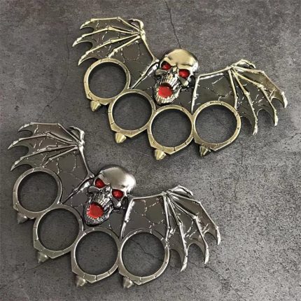 Material: zinc alloy Finger hole: 23mm Weight: about 143g This is a bat-shaped knuckle, with eyes and mouth painted with color, which is more lifelike. It is not only an ornament, but also a self-defense tool.