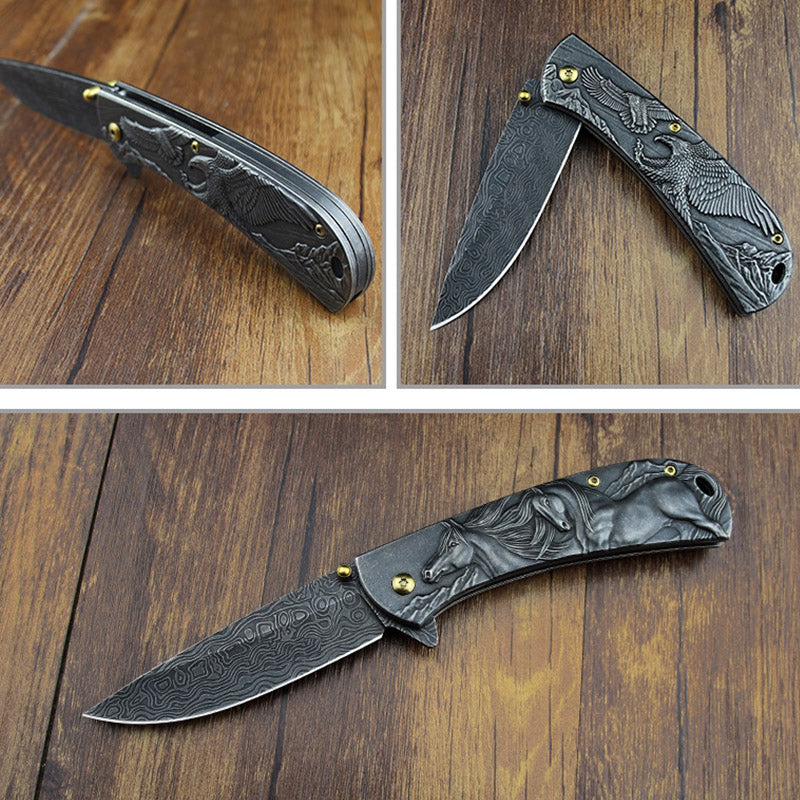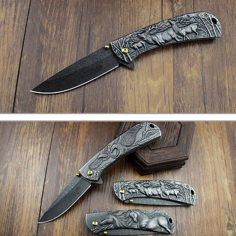 Authentic Embossed Pattern Folding Knife Outdoor Tactical Safety Knives For Cheap
