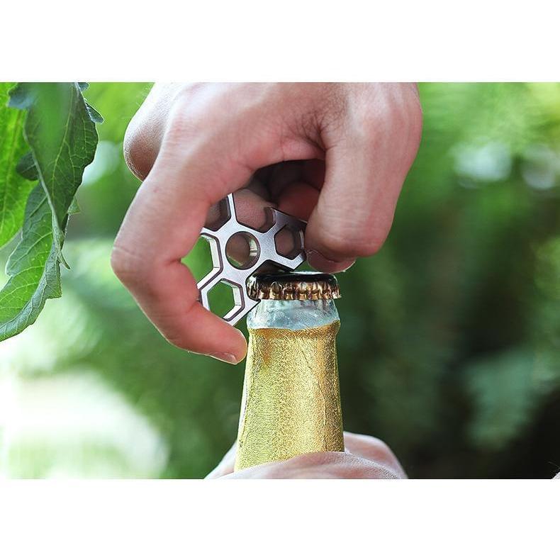 2019 Newest Self Defense EDC Multi Tool design, integrating self-defense stinger, bottle opener, wrench and other functions 6mm thickness, only15g weight.very exquisite Very comfortable grip feeling High grade TC4 titanium made, very solid and durable Concealed weapon, can pass security check easily Keychain hole reserving, can be carried easily CNC processing with Computer Carving Machine, all details are treated very carefully. Size:54mm x 49mm x 6mm