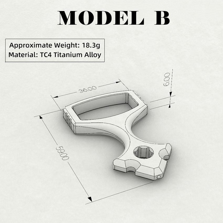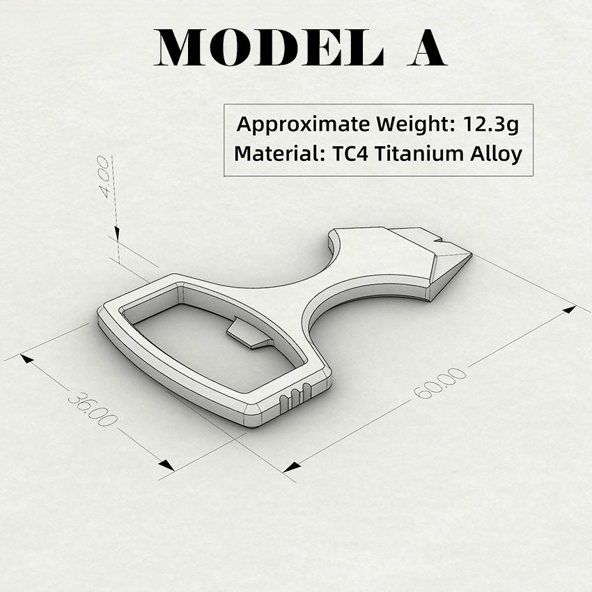 Great EDC Bottle Opener Made of TC4 titanium alloy, very solid and light Can be used as Self Defense Spike CNC processing with Computer Carving Machine, all details are treated very carefully. Extra Functions: Model A can be used a pry bar Model B can be used as a screw driver, the tool set will include 2 screw driver heads Model C is thicker, better for self defense use
