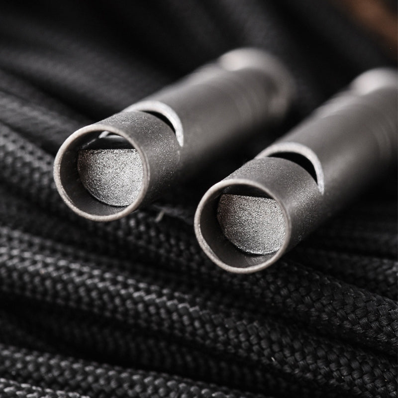 Material: TitaniumSize: 51mm*7mmWeight: about 3.2g All-titanium structure, embedded whistle core adopts precision stamping process to ensure firmness and durability. No need for ball, high-pitched single tube design, light and clear and pleasant sound. It is widely used in a variety of scenarios, including emergency rescue signals, command rescue operations, training password release and sports events, to meet your diverse needs.